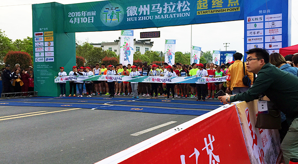 “这一季的油菜花开,身体跑起来,心情慢下来”,2016年首届黄山徽州马拉松赛于4月10日在黄山市徽州区举行,来自世界各地的1754名马拉松爱好者在如诗如画的徽州区,参加男女马拉松个人赛、迷你马拉松赛等组别的角逐,感受精深徽文化,体验跑马新活力。此次马拉松赛由黄山市徽州区人民政府主办,黄山市徽州区体育局、黄山市徽州区旅游委员会、樱桃体育文化传播(北京)有限公司、黄山徽州浪漫红文化旅游发展有限公司具体承办。