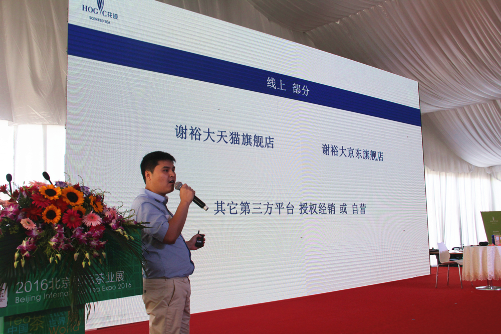 此次谢裕大新品发布会上,同时进行了花迹新品的上线与顺丰速运的战略合作项目,谢裕大企业相关负责人上台为大家介绍了谢裕大如何逐步从传统行业向新行业转型的定位,包括进行跨界营销、新媒体等新型多渠道的发展状况等,并在现场与顺丰集团签署了战略合作协议,力争共同突破创新,传递健康。最后,谢裕大作为黄山茶企的代表向与会各界朋友们发出邀请,中国茶叶流通协会2016年年会将于10月在黄山市召开,届时谢裕大茶博园新博物馆将一并举办开馆仪式,谢裕大诚邀各位齐聚黄山,共飨此次盛宴,共同谱写茶界壮丽的新篇章!