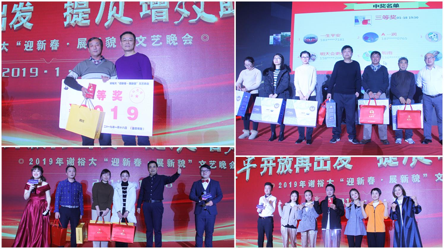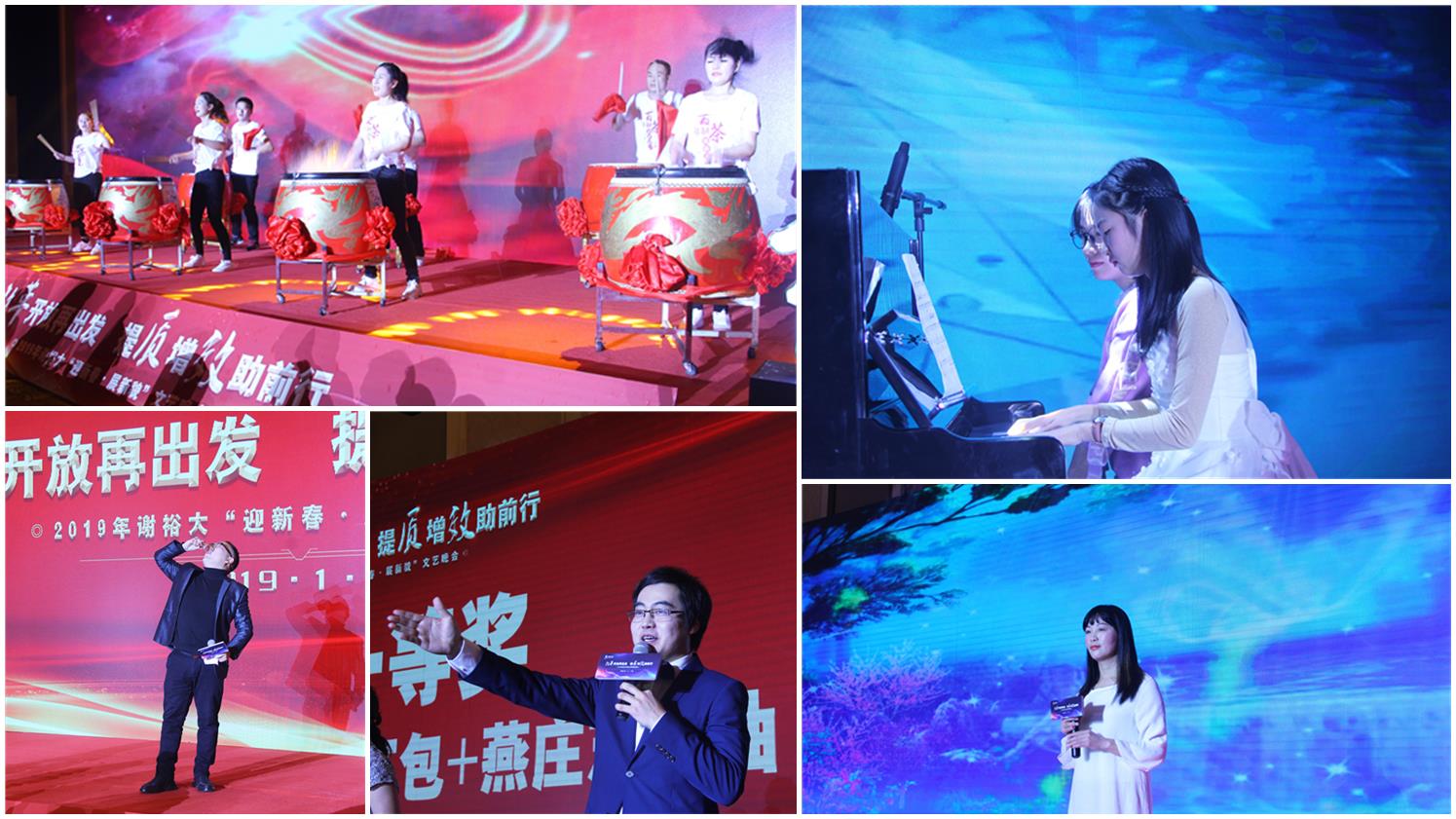 年会,就是辞旧迎新的家宴。精彩纷呈的谢裕大“迎新春·展新貌”文艺晚会正式开启,热情如火的舞蹈与歌曲串烧,点燃整场晚会的喜悦气氛,赢得满堂欢声笑语;更有另辟蹊径的诗歌朗诵和别开生面的钢琴弹唱,带给大家视觉上的新鲜感,成为晚会抢眼的一道风景线。无论哪一种表演形式,这些精心准备的节目都展露出谢裕大人多姿多彩的生活,呈现出这个大家庭的别样风韵。
