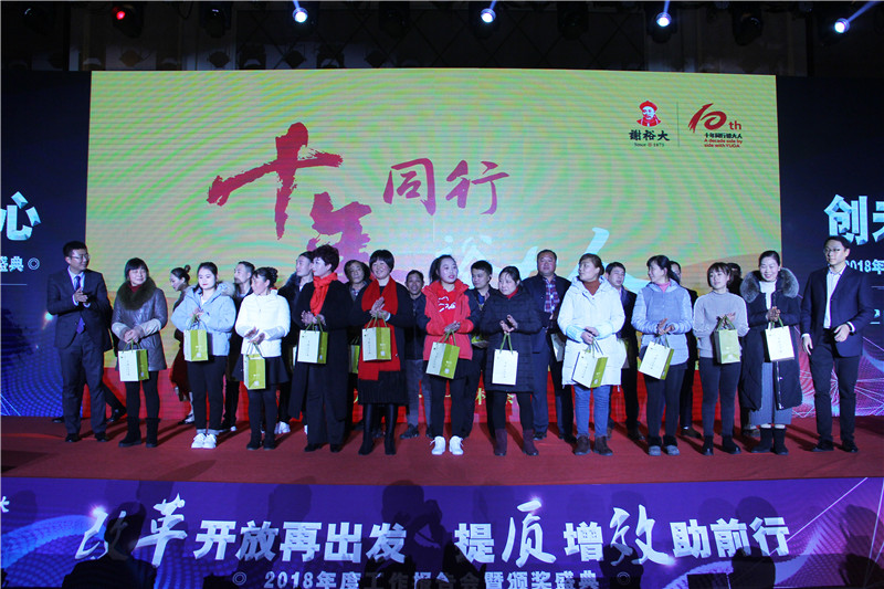 员工的凝聚力决定了公司的核心竞争力,关注基层员工、重视忠诚员工、鼓励优秀员工,这也正是谢裕大的企业文化。报告会现场同时公布了第九期《谢裕大人》和最新一批“十年同行裕大人”获得者,带领大家回顾团建活动的同时,对这些与谢裕大风雨同舟、陪伴十载的老员工们进行赠礼。公司在发展的同时,也时刻不忘关怀员工,让所有员工都能把谢裕大当做“第二个家”,在这里追逐理想,在这里共同成长。