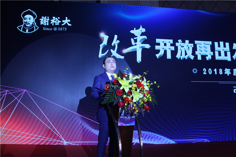 董事长谢一平发表讲话,他首先对谢裕大过去一年的工作给予了高度肯定,在2018年里,所有谢裕大人共同坚守初心、乘风破浪,创造了数不清的优异成绩,获得了业界内外的高度赞誉,谢裕大18年的历程,走出了一条夯实的品牌之路。他表示,一个再优秀的企业如果没有凝聚力和创新精神,不仅战胜不了竞争对手,也维护不了客户忠诚,更不能获得持续稳定的发展。2019年茶行业仍然面临着新的机遇和挑战,任务十分艰巨,希望谢裕大继续秉持“诚招天下客”的经营理念,巩固下求发展,上至公司高层领导,下至基层员工,上下一心,携手共创谢裕大2019年的“裕大之梦”!