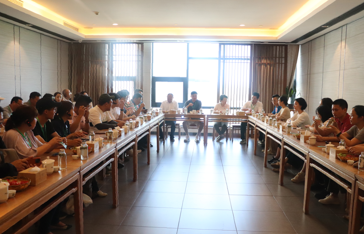 canguanjieshuhou,zhongrihansanguodaibiaojiugeguochawenhua、chayi、chachuanchengyufazhandengneirongzhankailerelietaolun。zuotanguochengzhong,xieyudafengshanglehuangshanmaofengyuqimenhongchakuandaiwaibin,liangkuanchanzihuangshandezhongguoshidamingchafenbieyixianshuangqingxiangjifuyunongxianghuodelewaibinmendeyizhixiaiyuzanshang。zuotanhuijieshuhou,xieyudayihuangshanmaofengchakuizengwaibin,ronghelehuipaimatouqiangtesedechayebaozhuangyelingzaichangzhongrenzaiyicijingtanyuzhongguowenhuadeduyoumeili。
