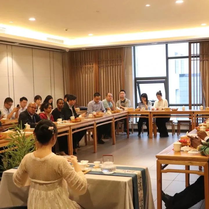 2023年,外国驻华使节团一行到访谢裕大茶博园,共同品尝谢裕大黄山毛峰茶。