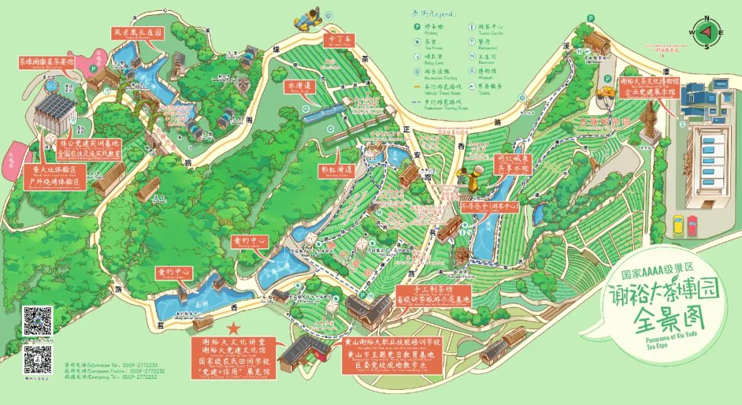 同时,谢裕大茶博园还包含谢裕大茶文化博物馆、红色党建教育基地、科普教室和手工制茶坊等室内体验设施,多角度展示了中国茶叶及安徽茶叶的历史和文化、茶产业发展历史、黄山毛峰非遗制作过程等内容,为参观者提供了丰富的教育和体验活动场所。